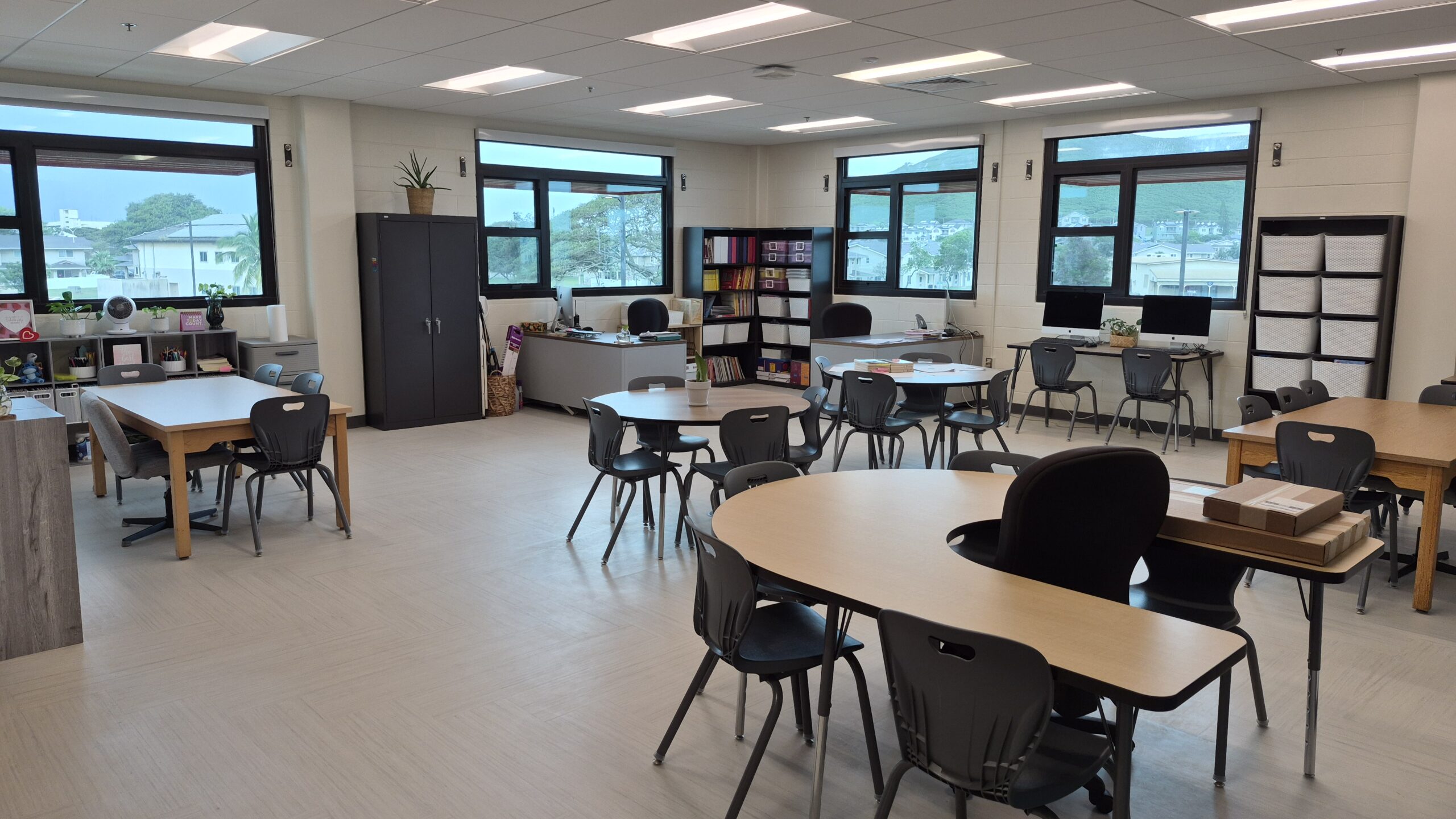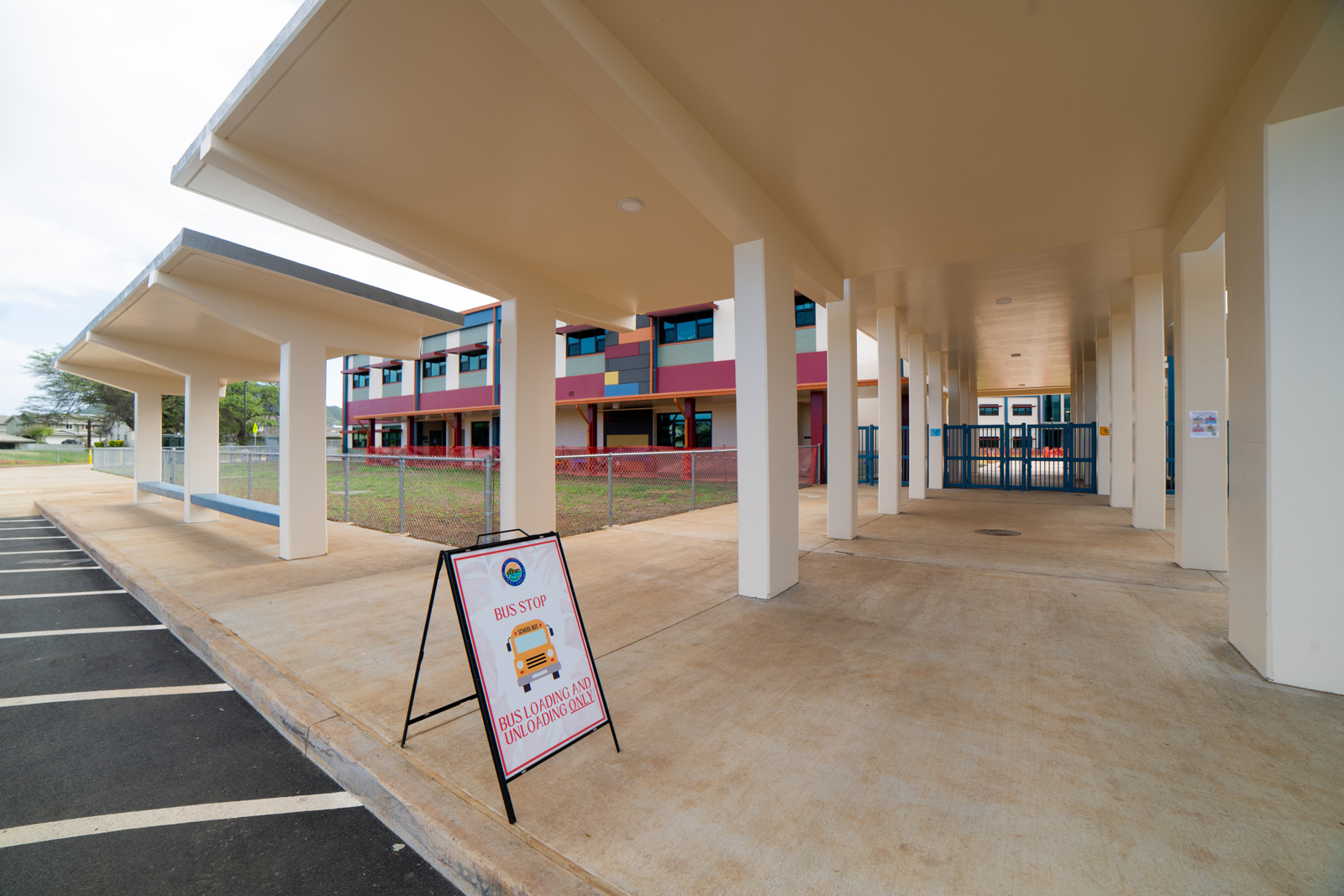 As the current Mokapu Elementary facilities will continue to operate during construction, work will be conducted in two phases. Phase 1 work involves demolition and removal work, temporary classrooms, site preparation, drainage system, chain link fencing and gates, concrete sidewalk and curbs, asphaltic concrete paving, pavement markings, underground sprinkler system, lawns and grasses, water and sewer systems, masonry, structural steel work, carpentry, roofing, plumbing and electrical work, fire alarm system, elevator installation, air conditioning and ventilation, painting, disturbance of hazardous materials and other related work to construct the new Administration and Classroom buildings. After the Phase 1 buildings are completed and occupied, Phase 2 involves the demolition and removal of the existing classroom buildings will commence to clear the way for the Covered Playcourt and Cafeteria building. However, the existing cafeteria building will remain operational until the new cafeteria building is up and running.